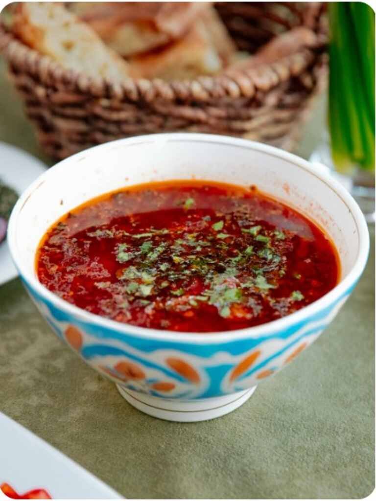 The flavor is deeply savory, slightly tangy, and enriched by the distinctive taste of palm oil.